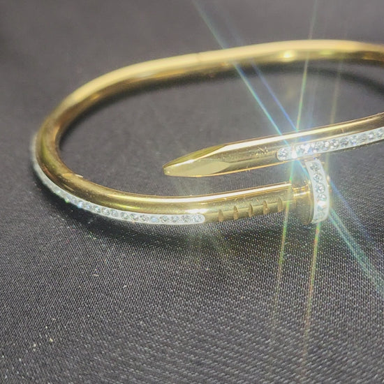 Bring timeless luxury to your wrist with this Cartier-inspired bracelet, beautifully adorned with sparkling stones. Designed for elegance and sophistication, this bracelet features a classic Cartier-style band with shimmering stones embedded throughout, giving it a high-end and glamorous look.