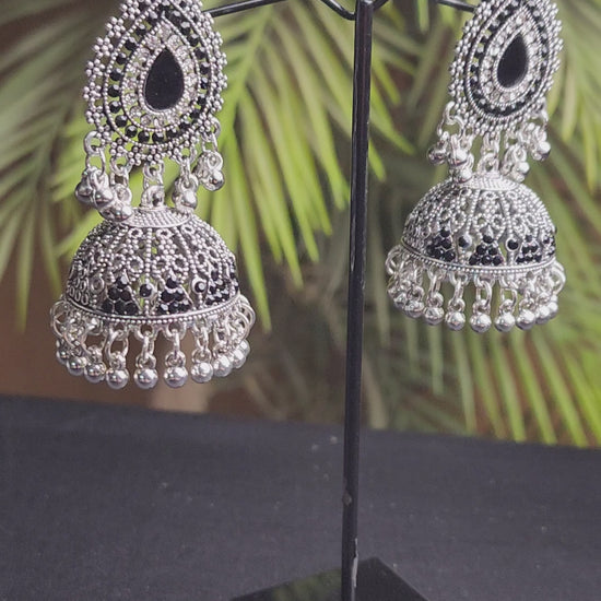 Add a touch of timeless elegance to your jewelry collection with these stunning Center Black Stone Inside Outside Silver Earrings. Crafted with a sleek silver finish, these earrings feature a beautiful black stone at the center, surrounded by detailed silver work both inside and outside, creating a balanced and eye-catching design.